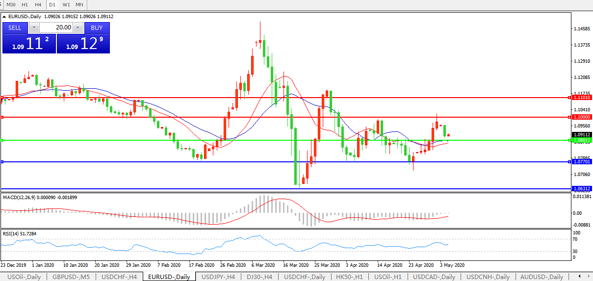 交易策略:1.0880上方看涨,目标1.1000、1.1100