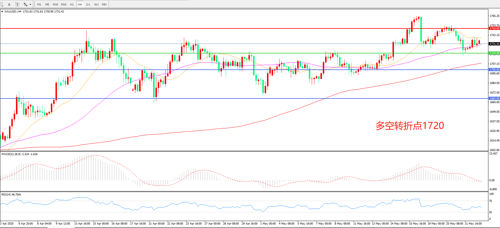 多空转折点:1720.00
