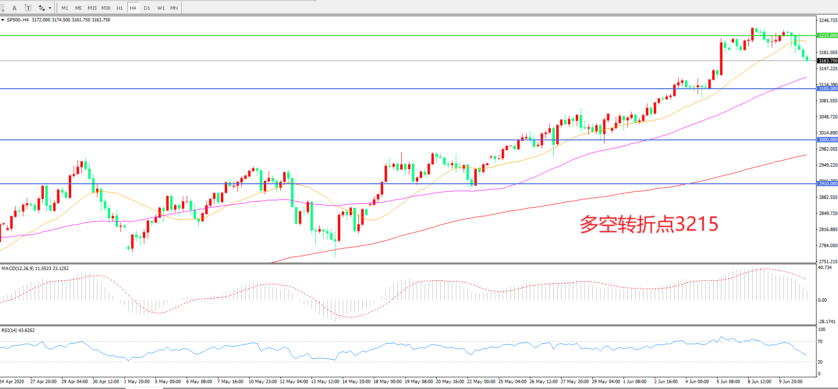 多空转折点:3215.00