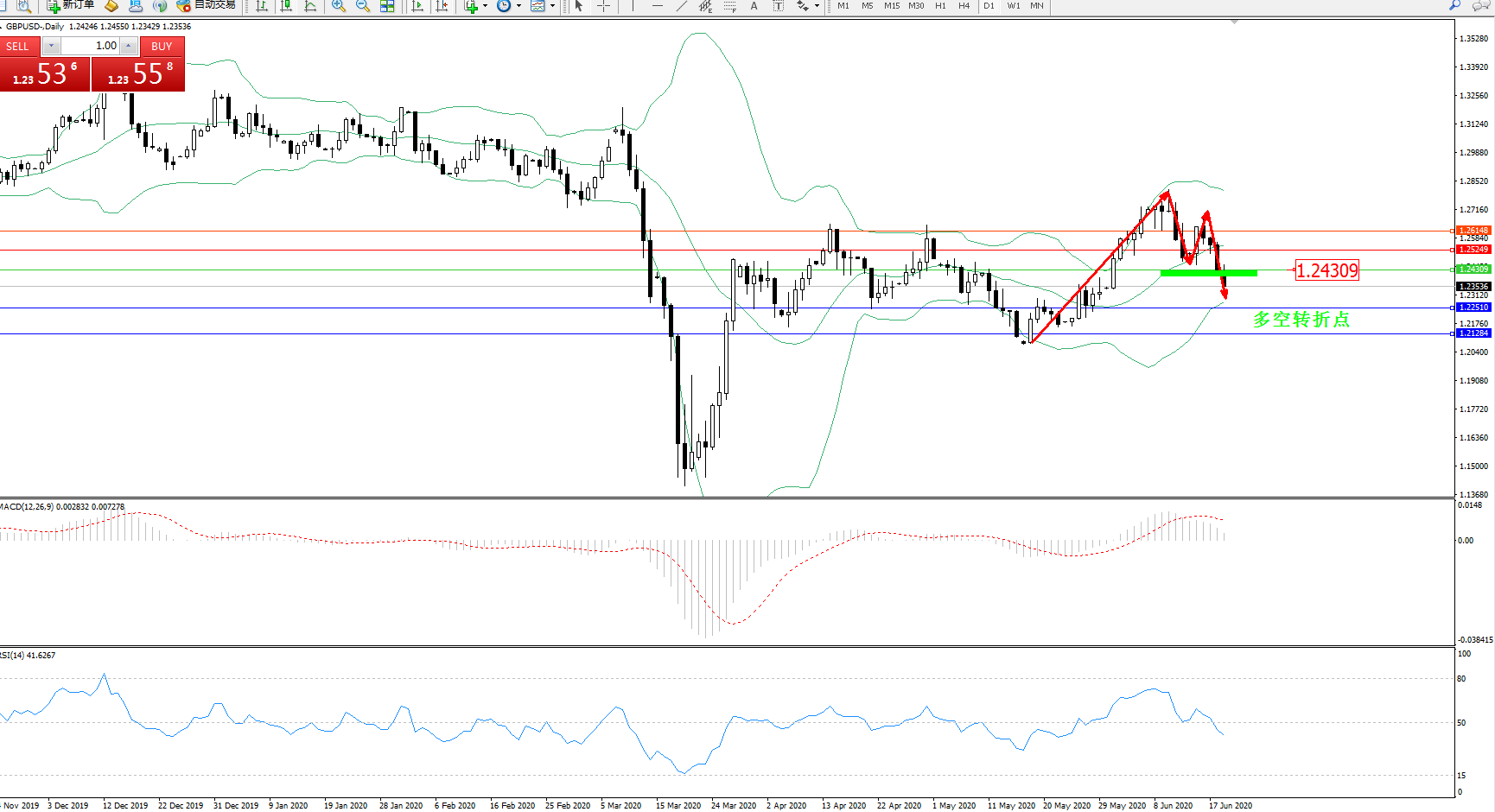 交易策略:1.24309下方看跌,目标1.225101.21284