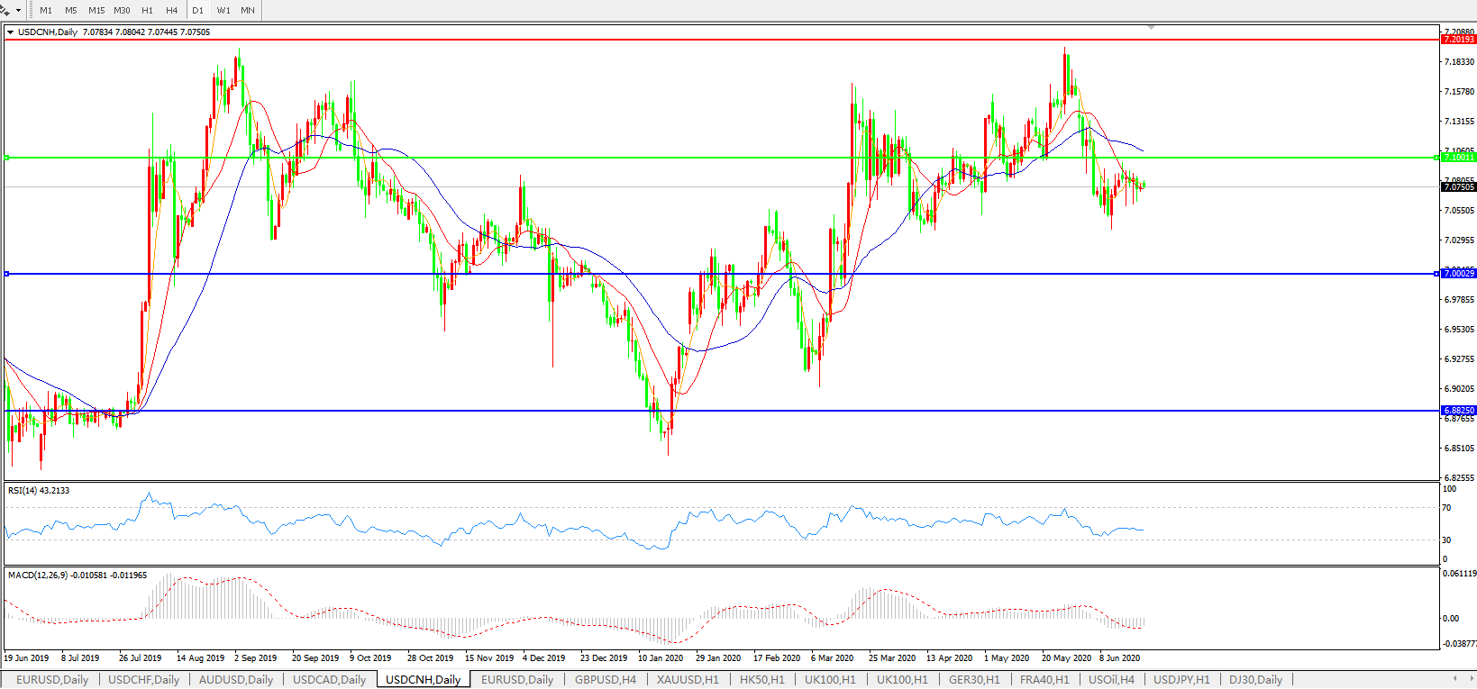 美元兑人民币USDCNH 日线图: