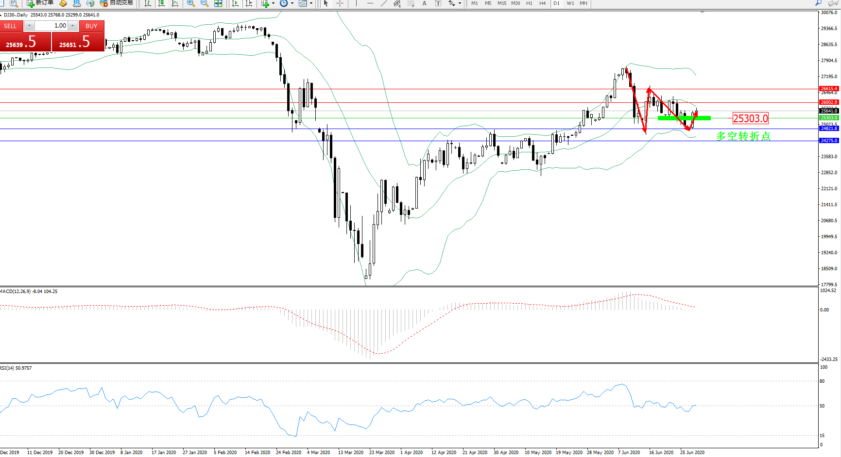 道琼斯指数DJ30—— 日K线图显示: