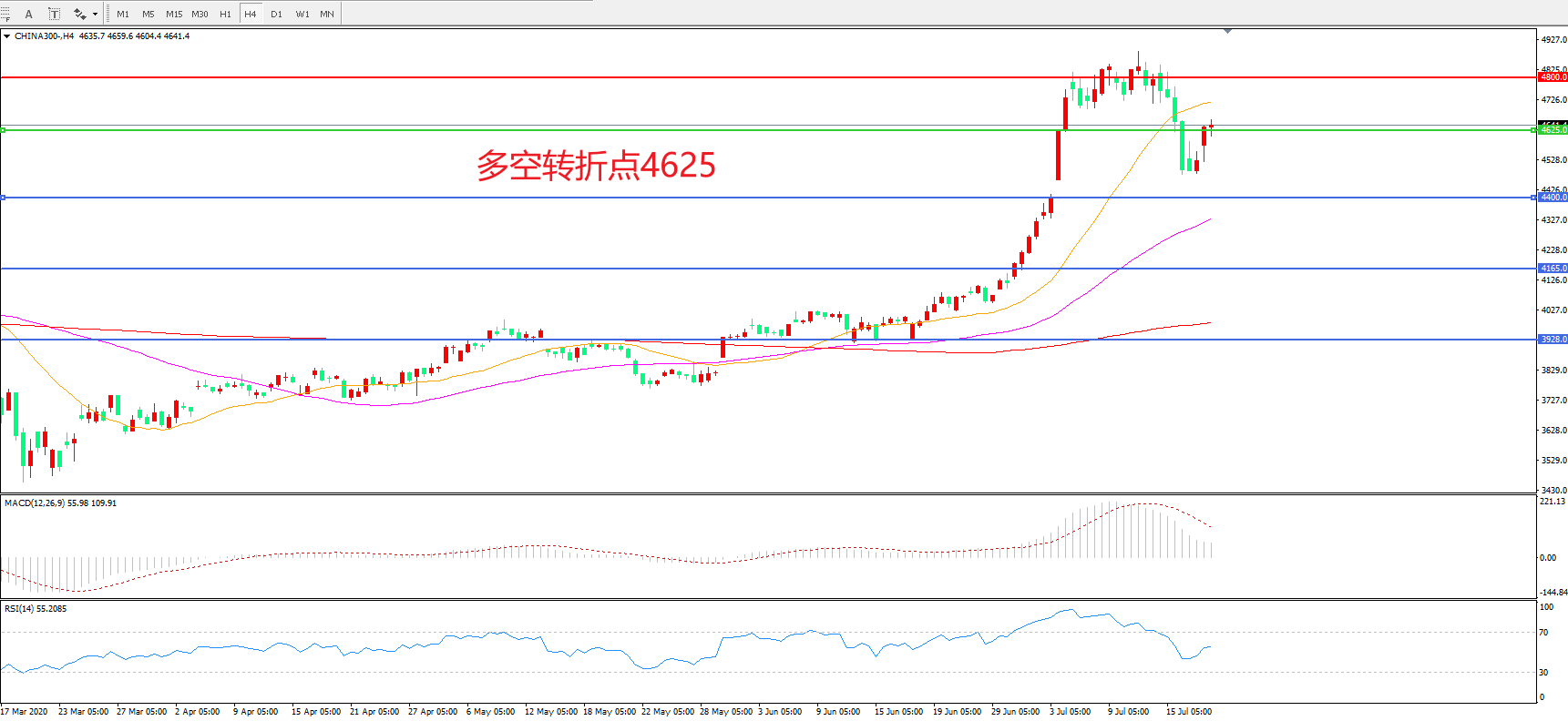 多空转折点:4625.00