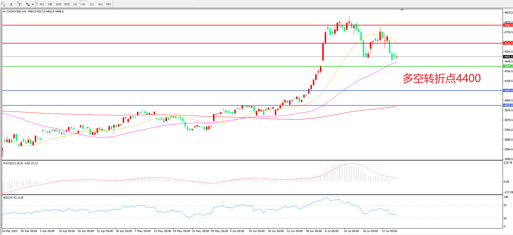 多空转折点:4400.00