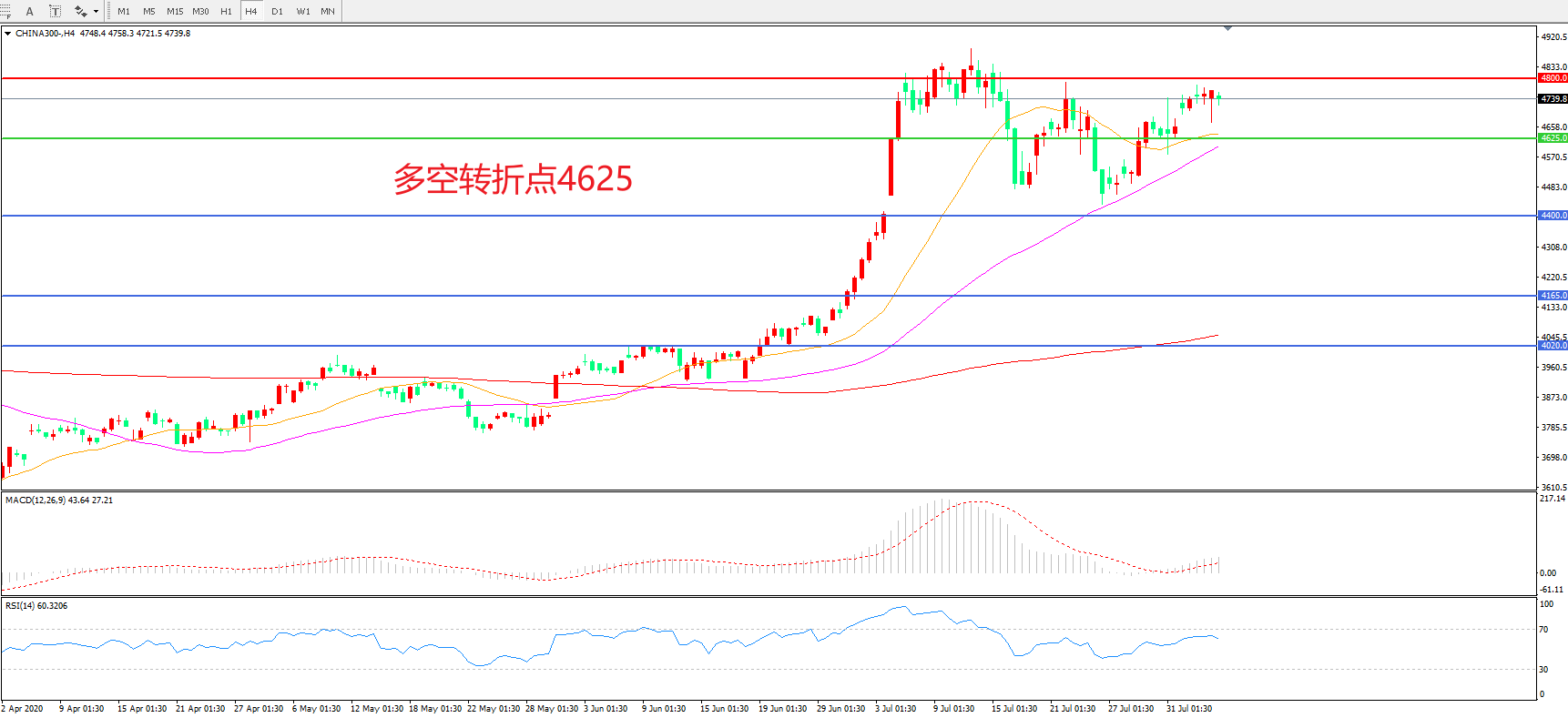 多空转折点:4625.00
