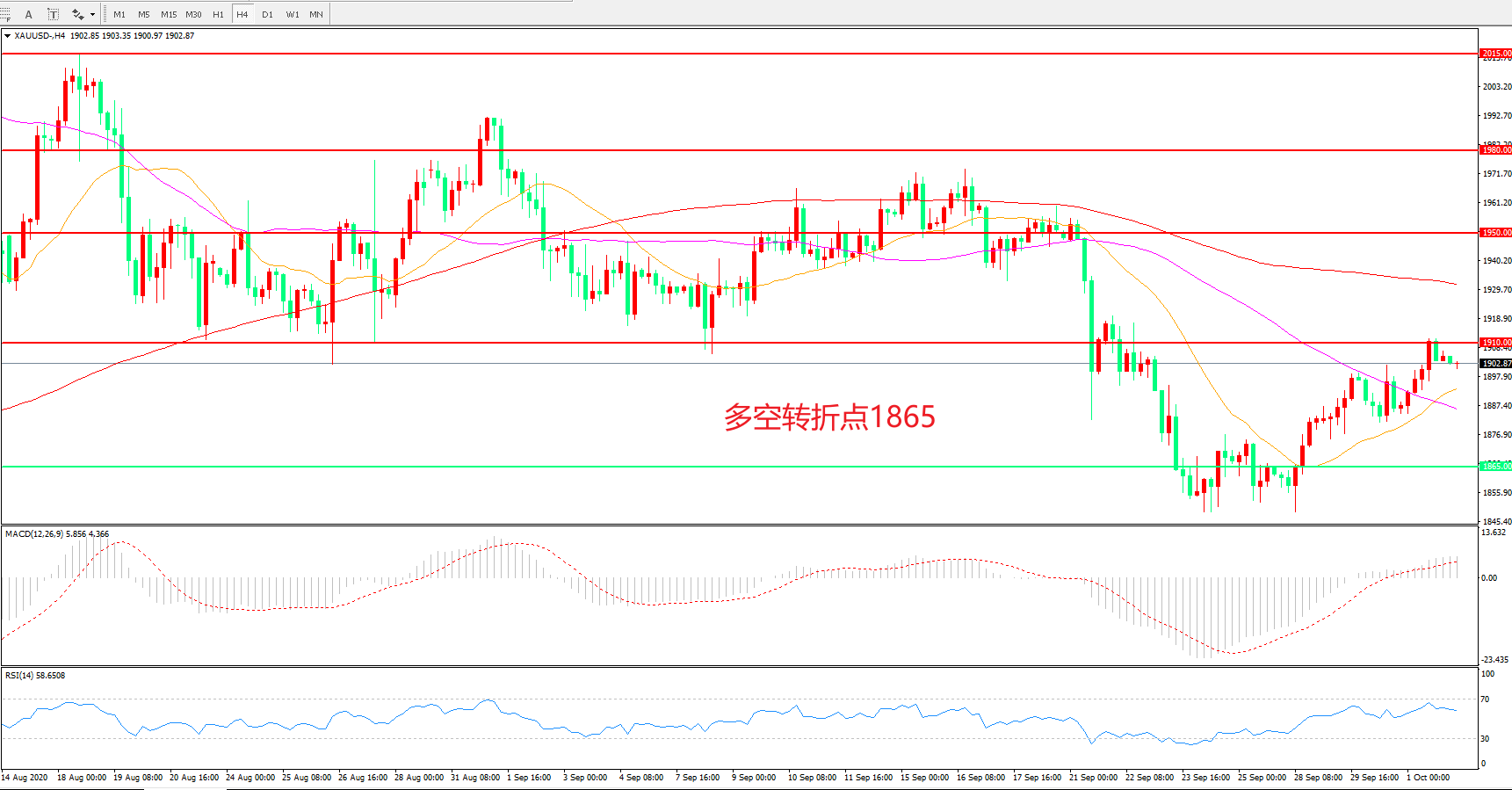 多空转折点:1865.00