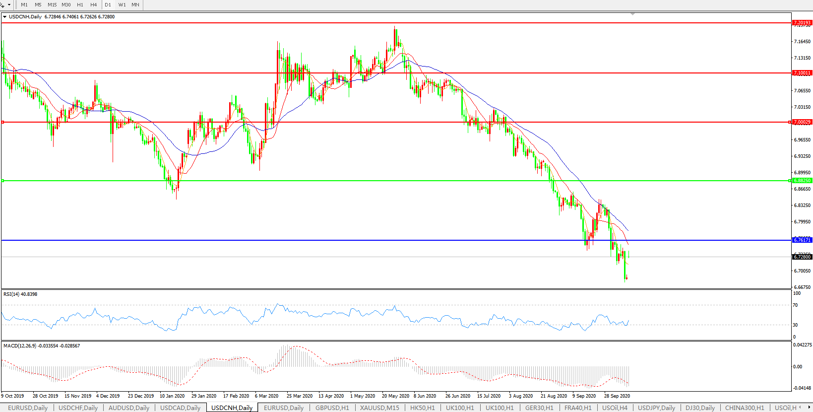 美元兑人民币USDCNH 日线图: