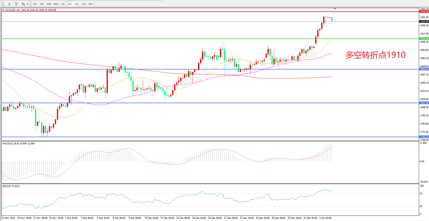 现货黄金XAU/USD    4小时图