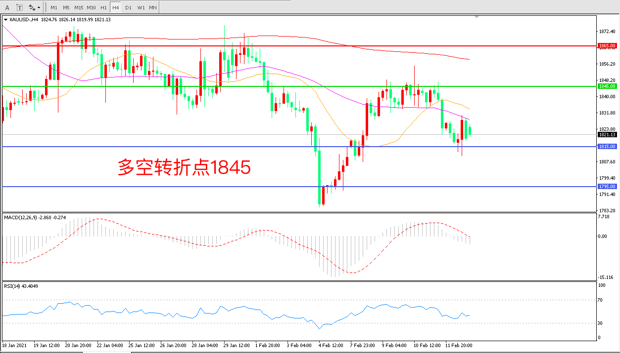 交易策略:在1845.00之下看,目标1815.00    1795.00