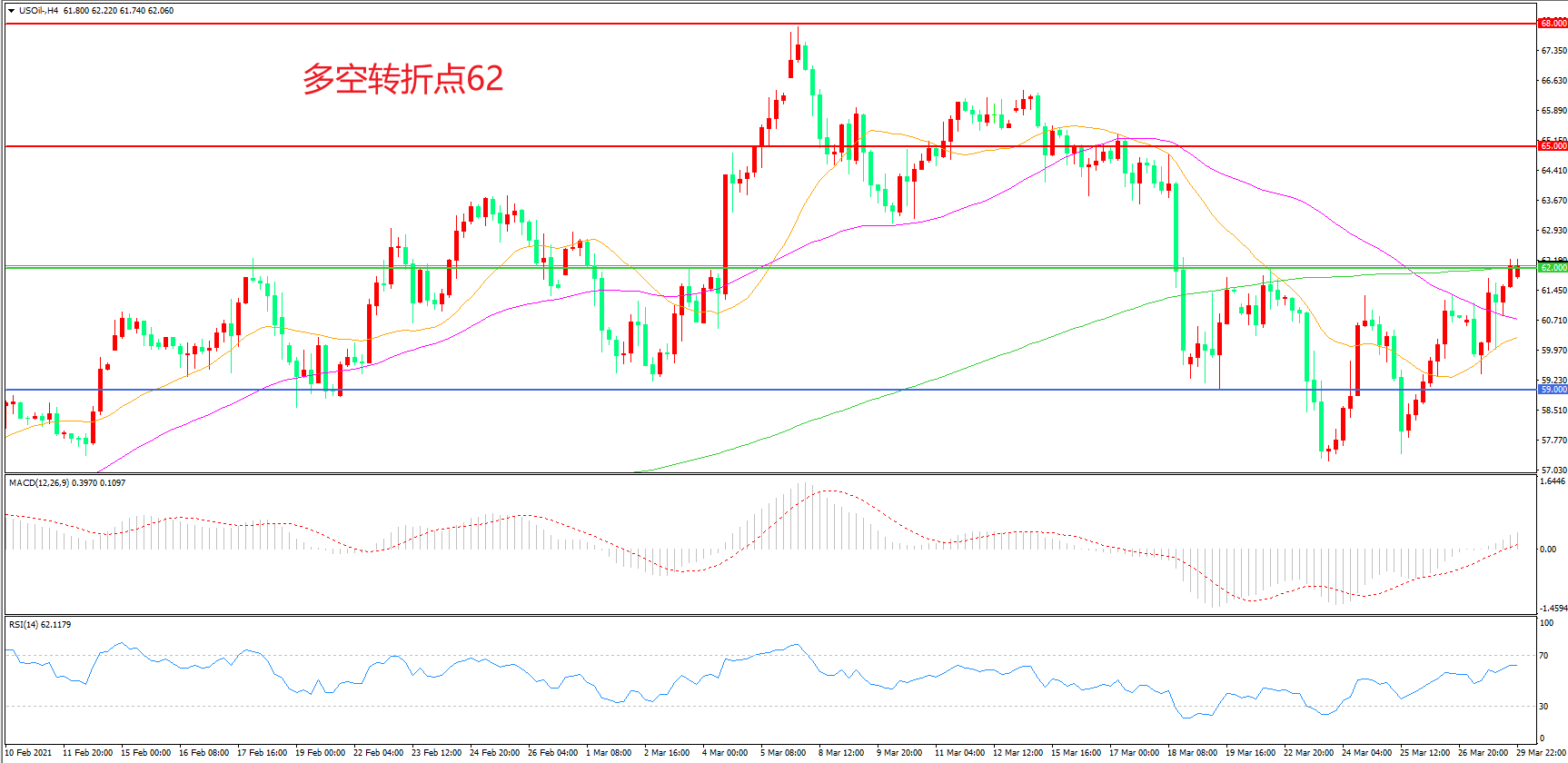 交易策略:在62.00之上看涨,目标65.00    68.00