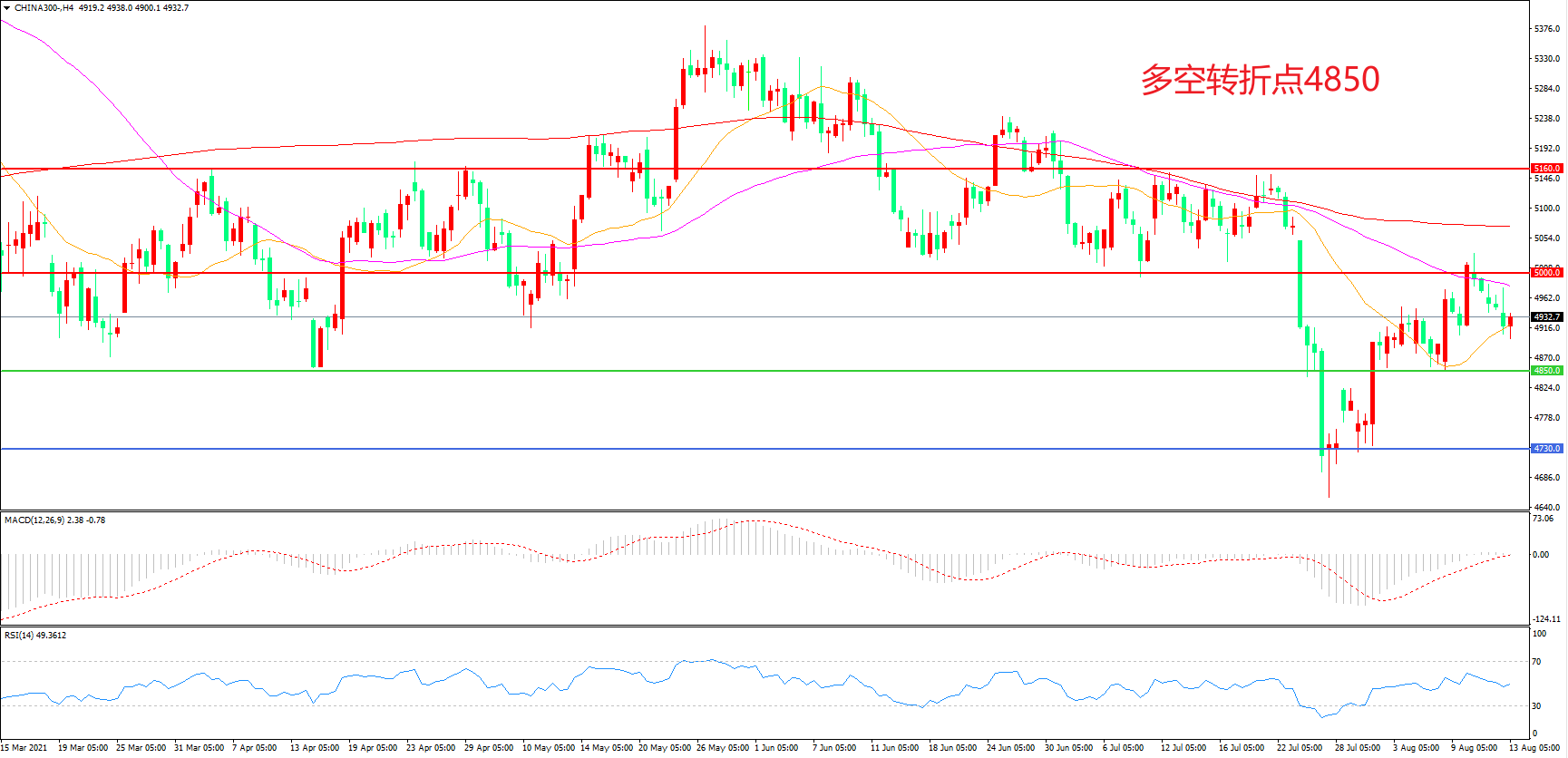 多空转折点:4850.00