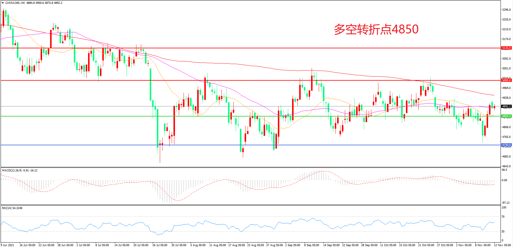 多空转折点:4850.00