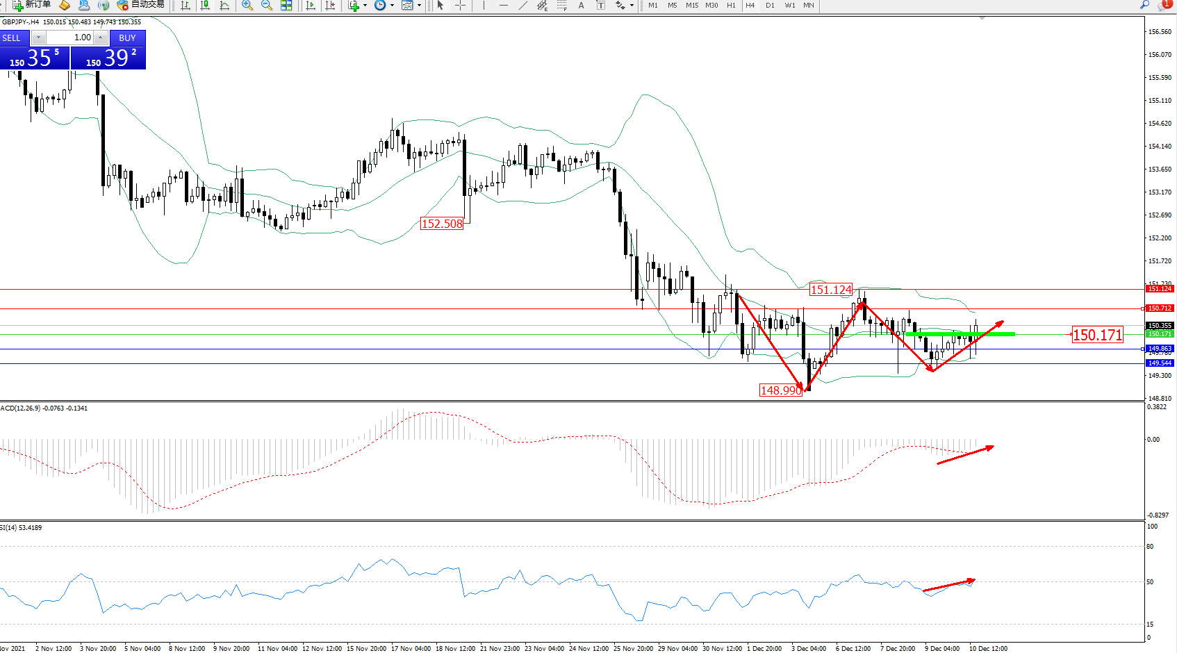 交易策略:150.171上方看涨,目标150.712、151.124