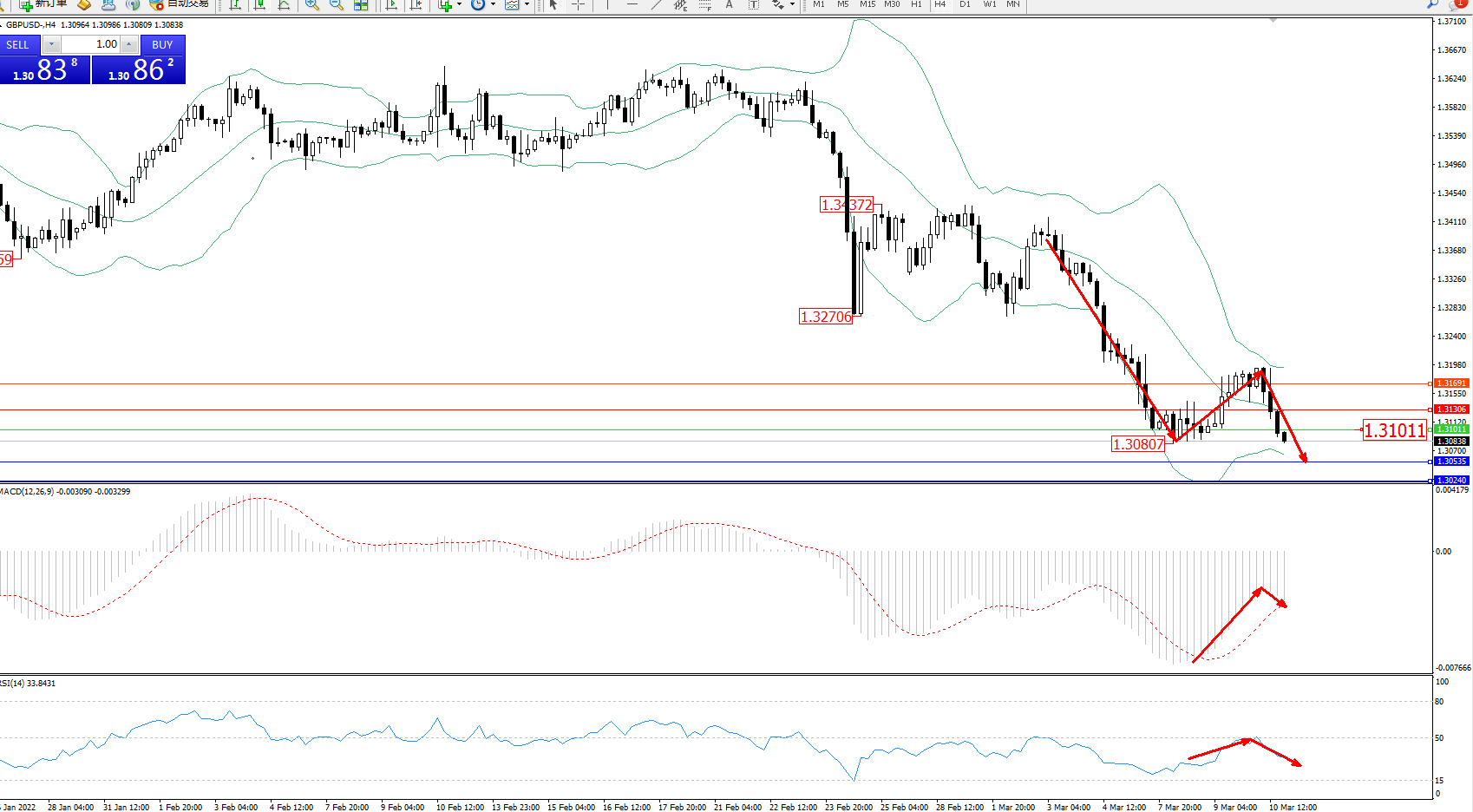 交易策略:1.31011下方看跌,目标1.30535、1.30240