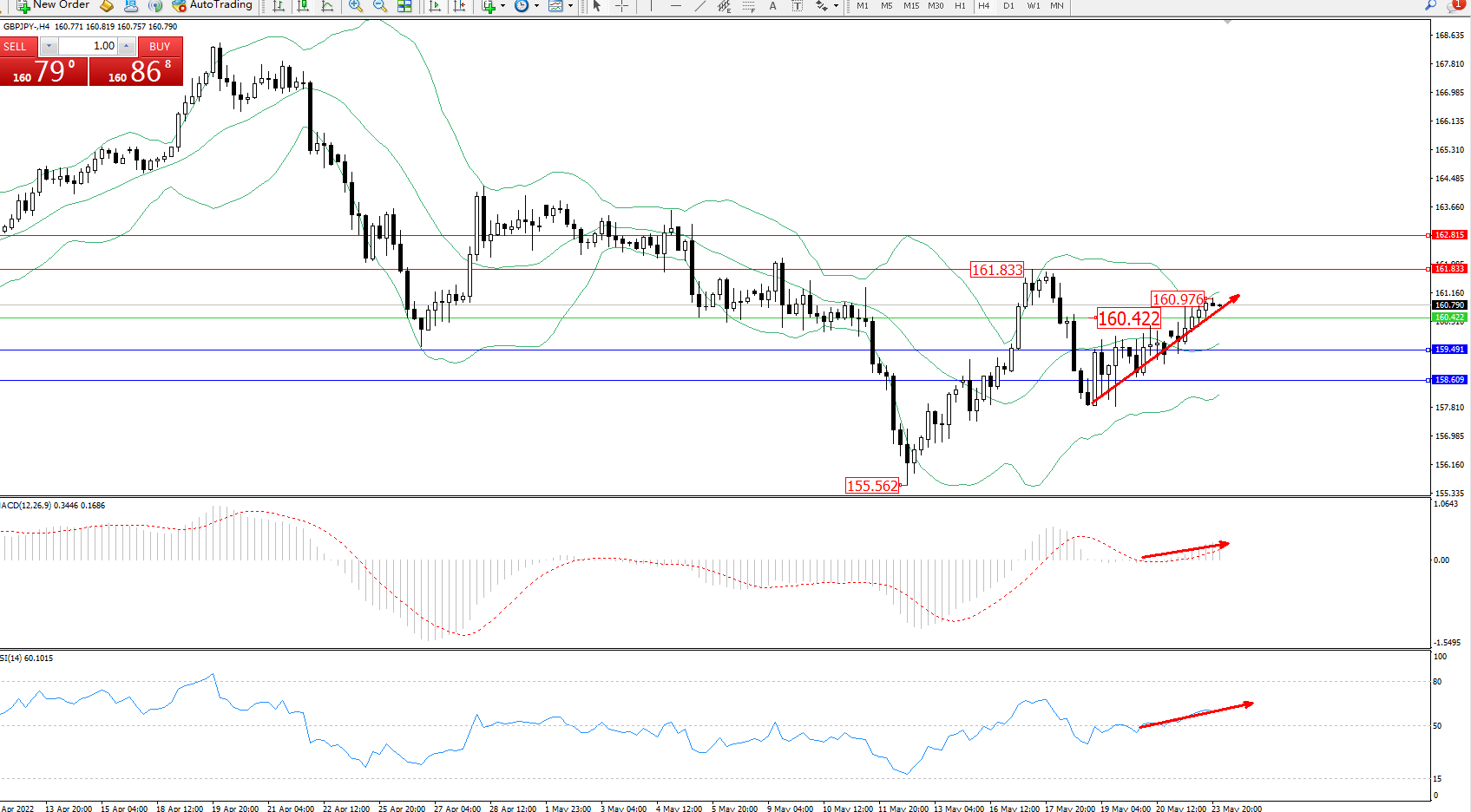 交易策略:160.422上方看涨,目标161.833、162.815