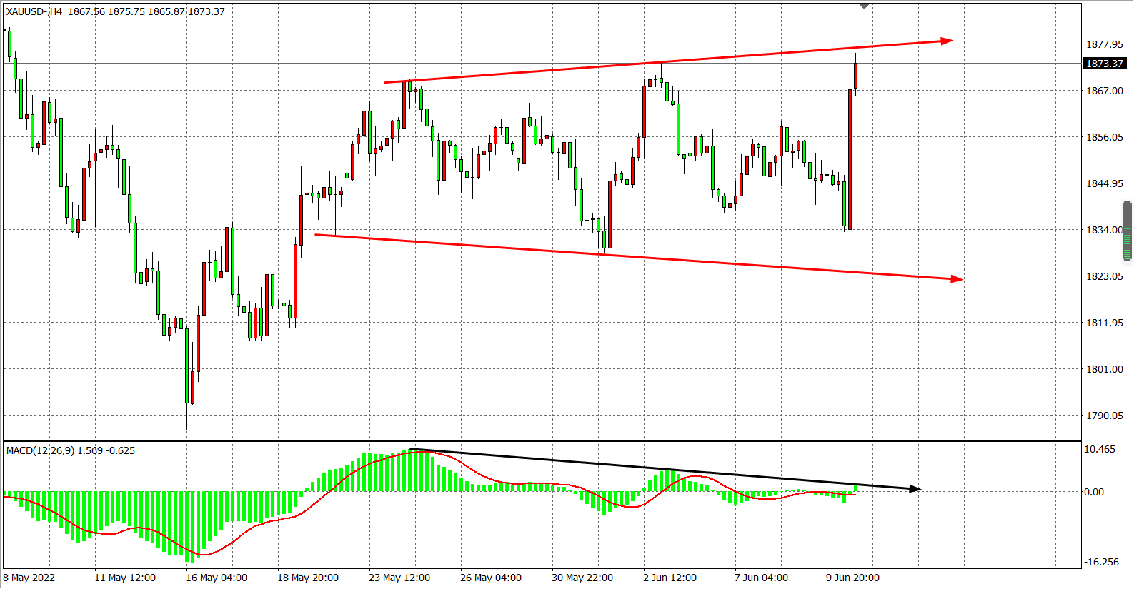 现货黄金XAU 4小时图