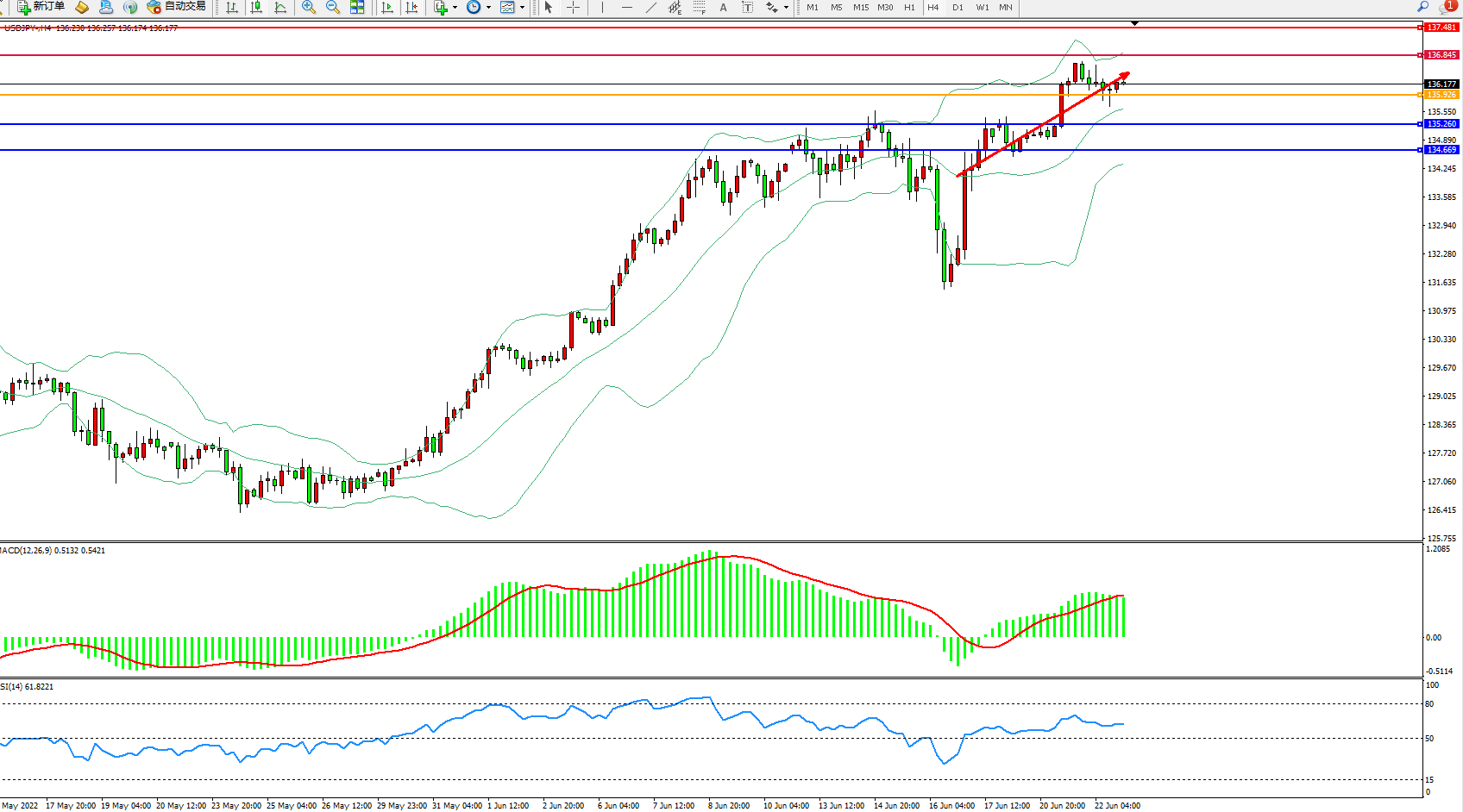 支撑位:135.260、134.669