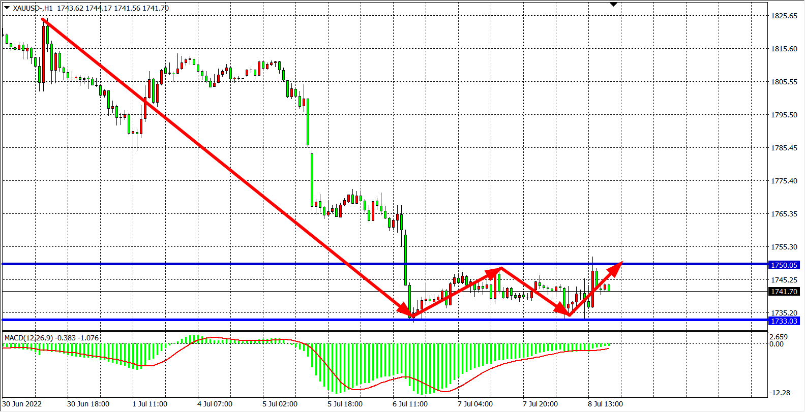 交易策略:在1733.00之下看跌,目标1720.00 1700.00