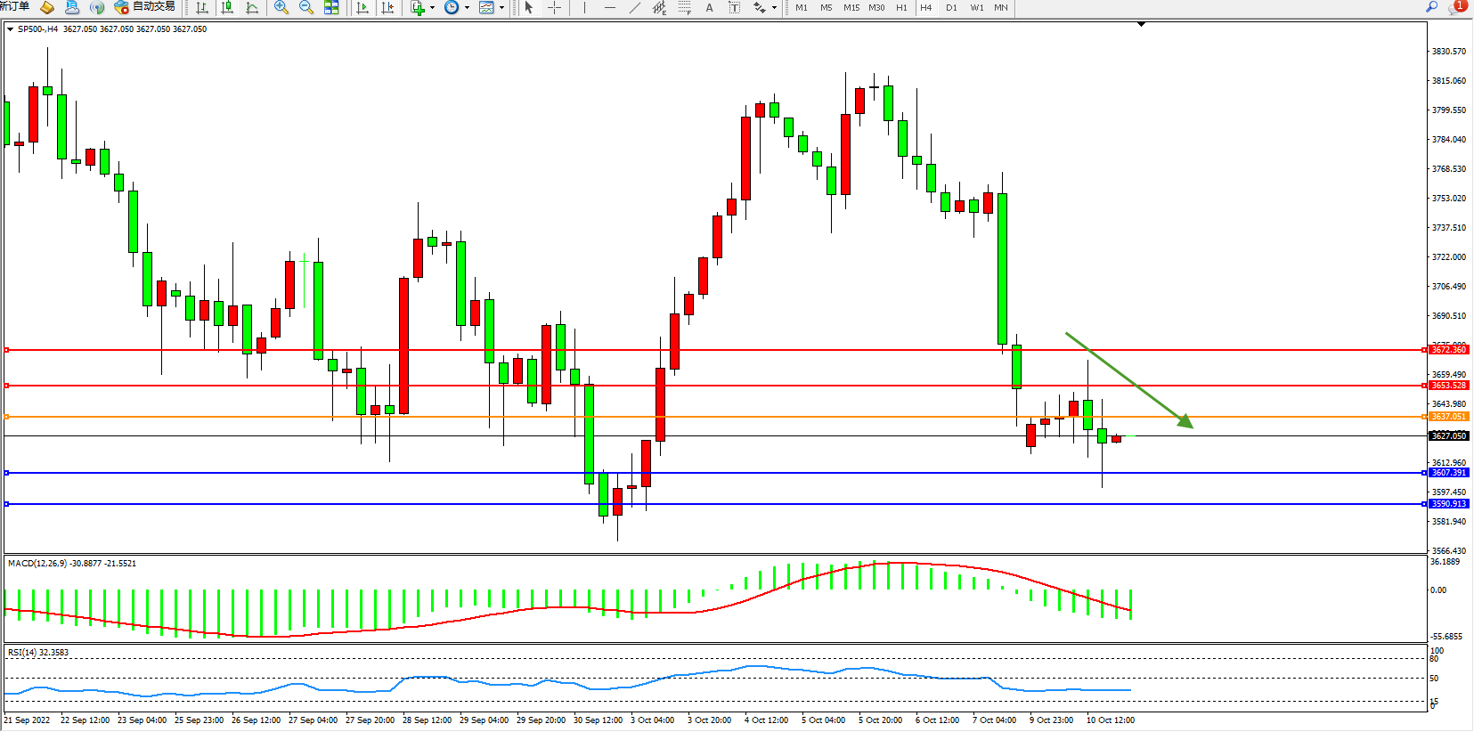 标普SP500——4小时K线图显示: