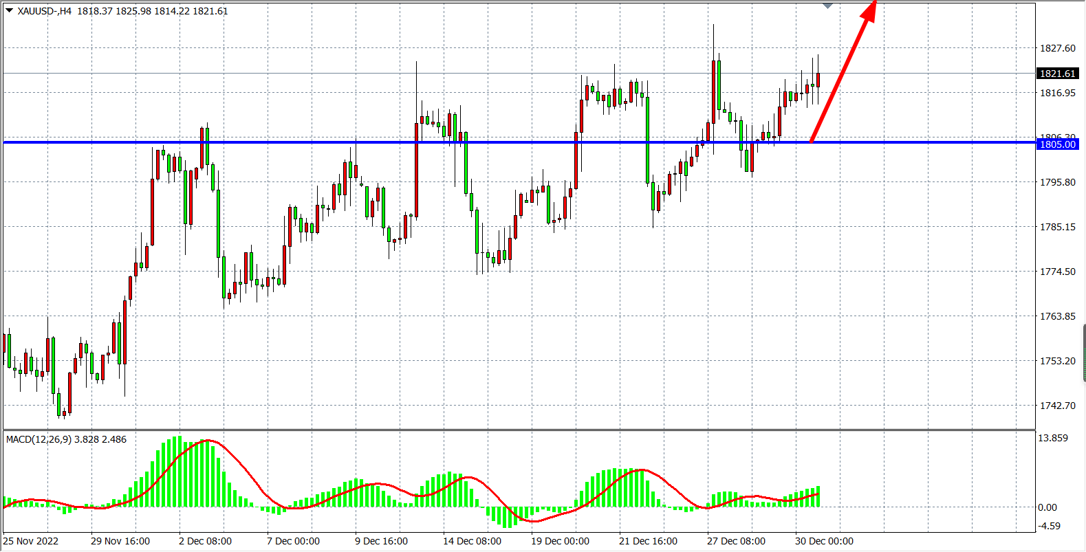 交易策略:在1805.00 之上看涨,目标1820.00 1835.00