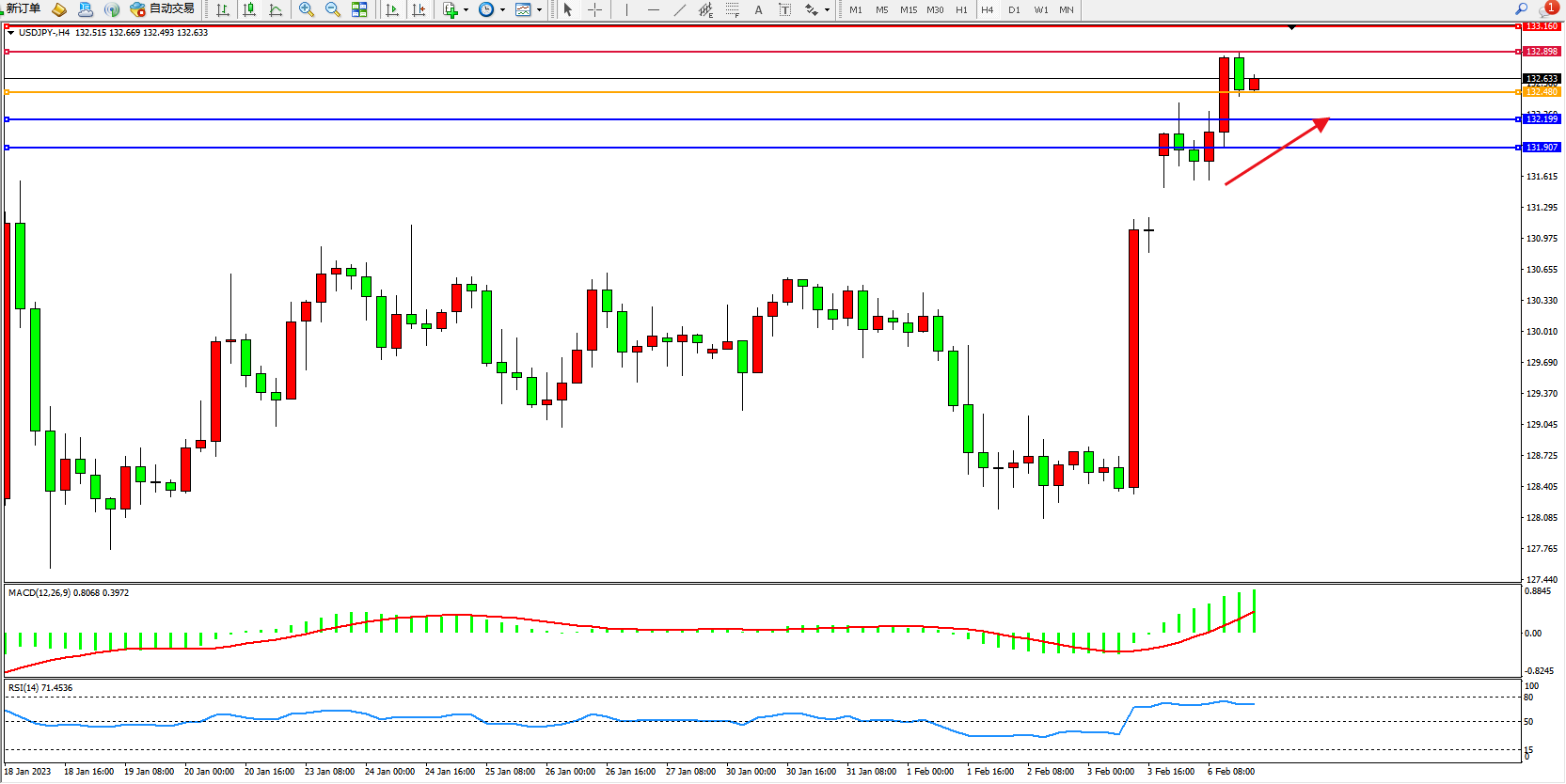 交易策略:132.480上方看涨,目标132.898、133.160