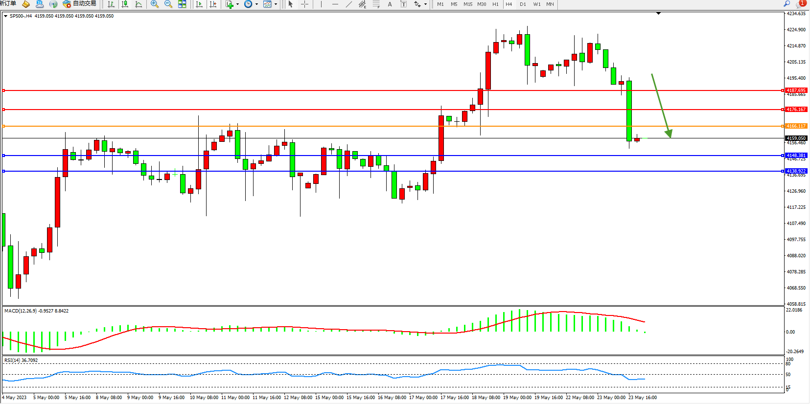 标普SP500——4小时K线图显示: