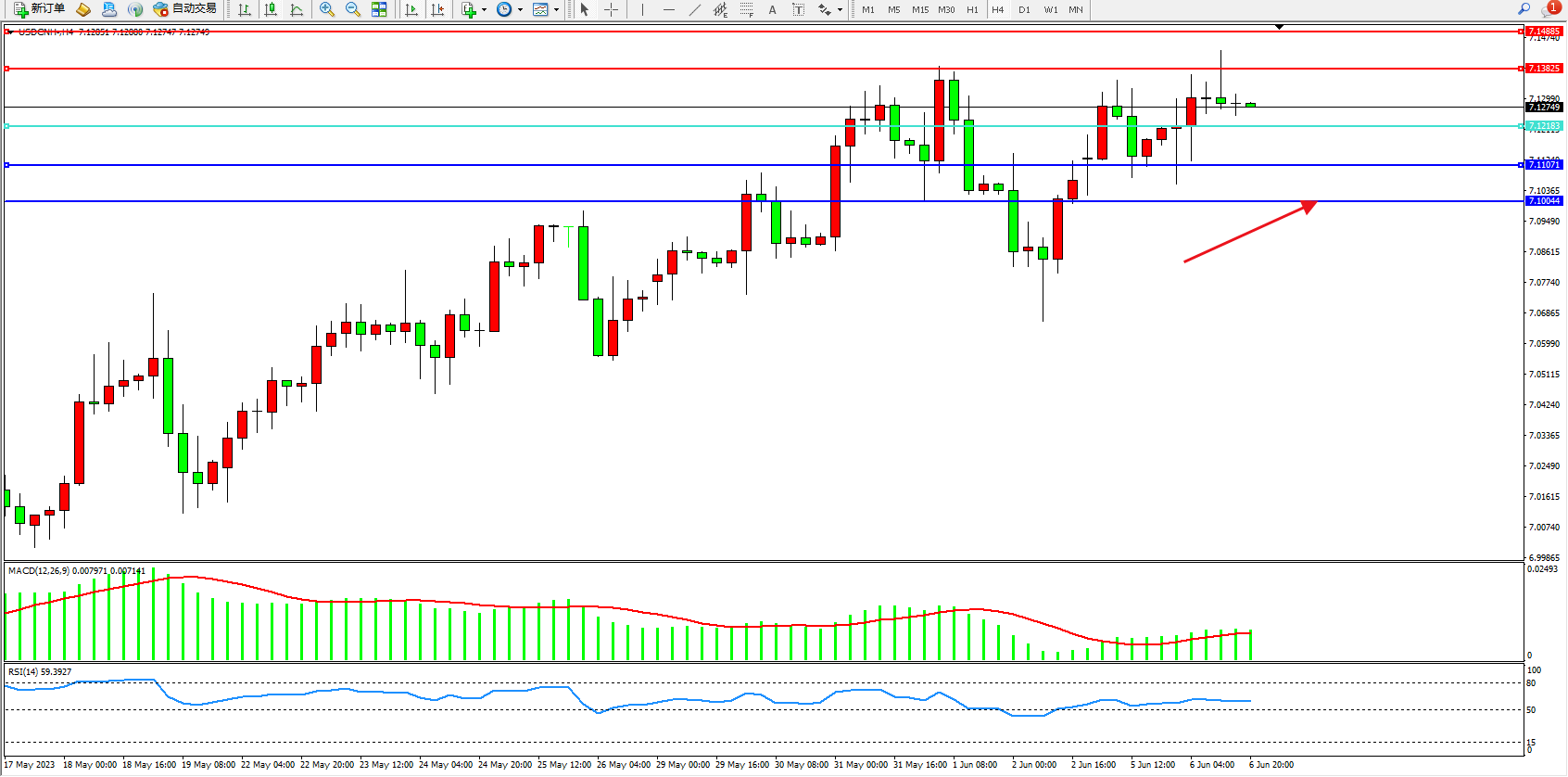 备选策略:7.12083下方看跌,目标7.11071  7.10044
