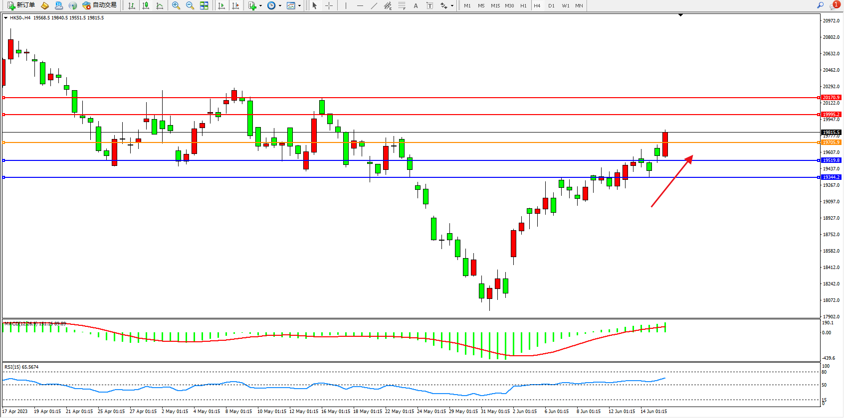 恒指HK50 4小时图