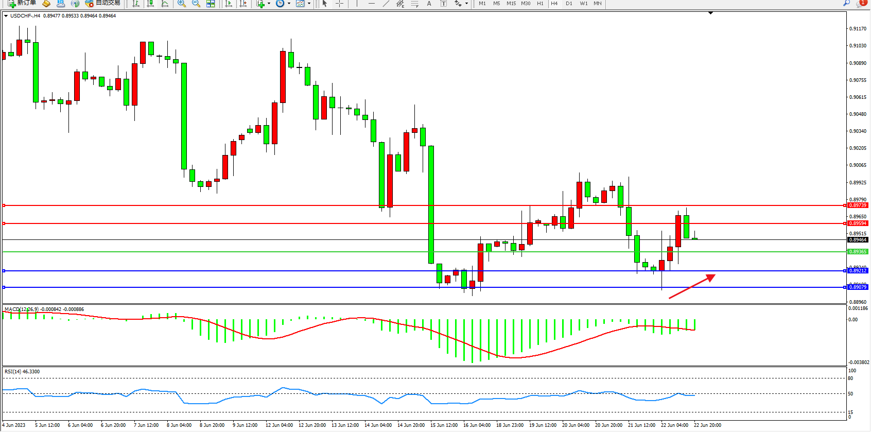 美元瑞郎USDCHF——4小时K线图显示: