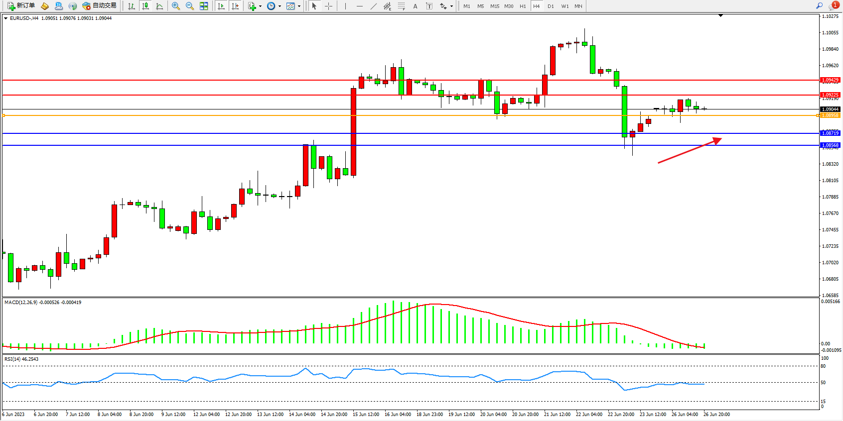 交易策略:1.08958上方看涨,目标1.09225  1.09429