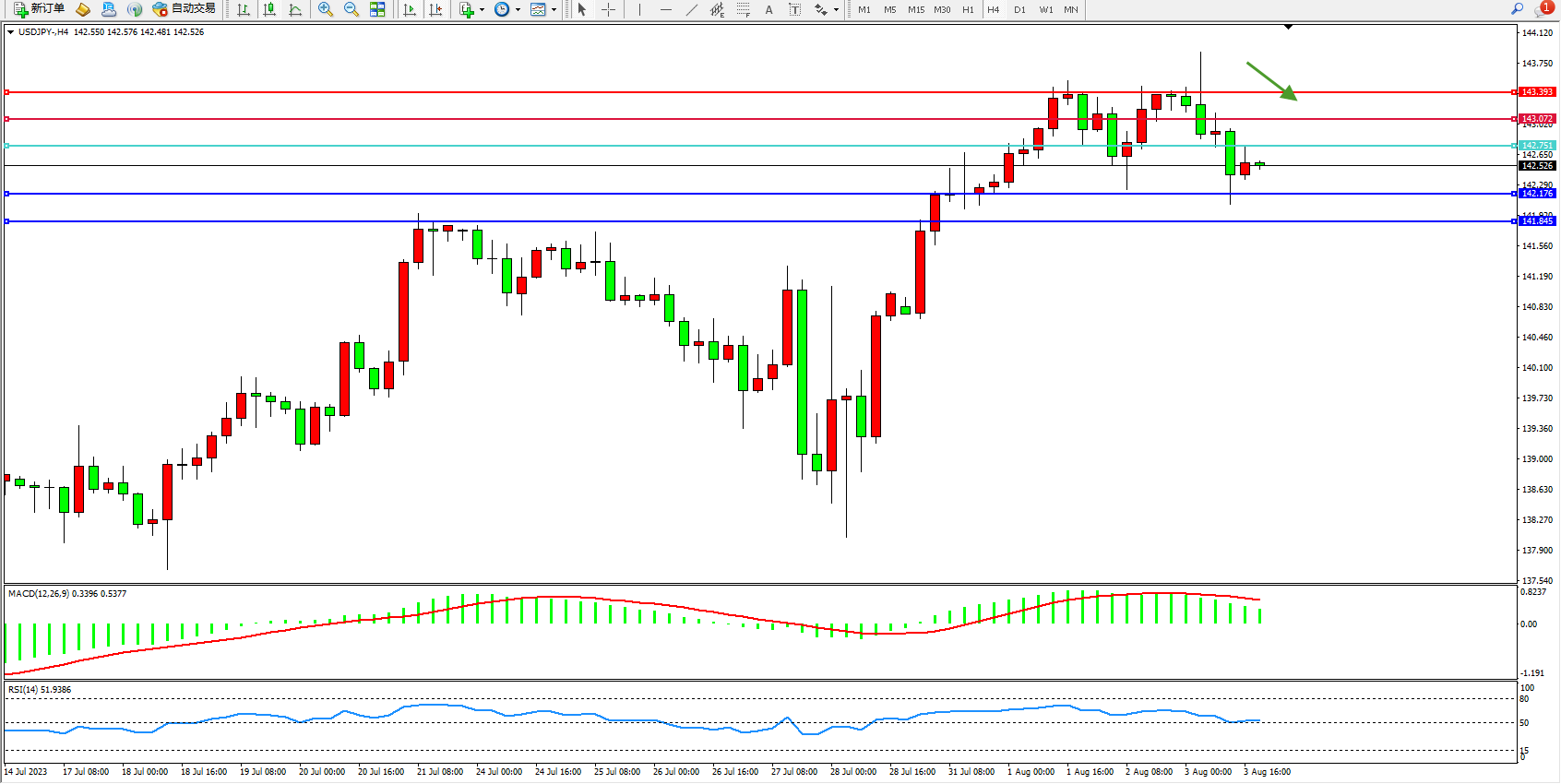 阻力位:143.072  143.393