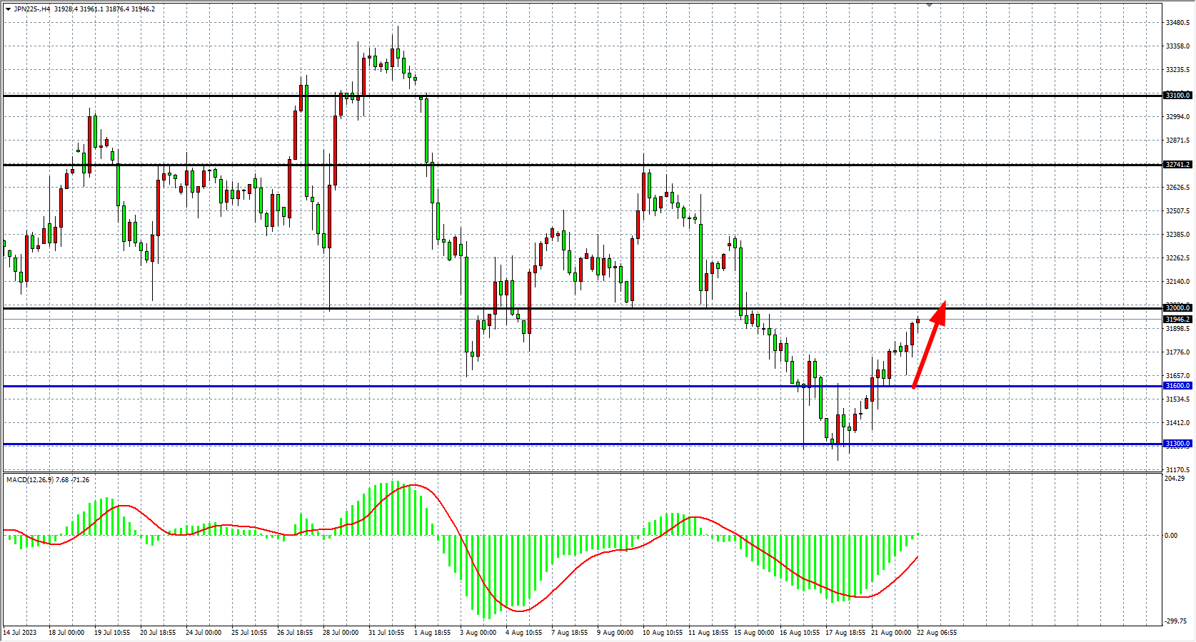 周二(8月22日)日经225指数收盘上涨332.50点,涨幅1.05%