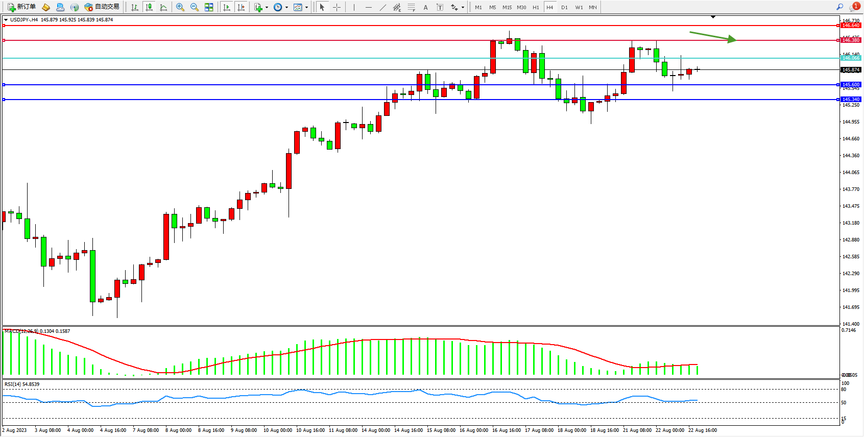 阻力位:146.380  146.640