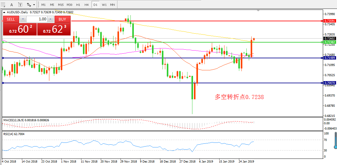交易策略:在0.7238之上看涨,目标0.7359.  0.7464