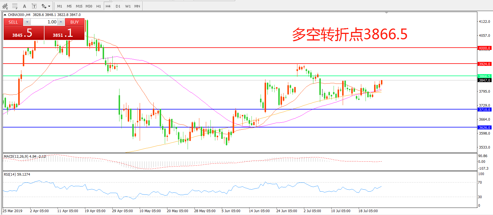 多空转折点:3866.50