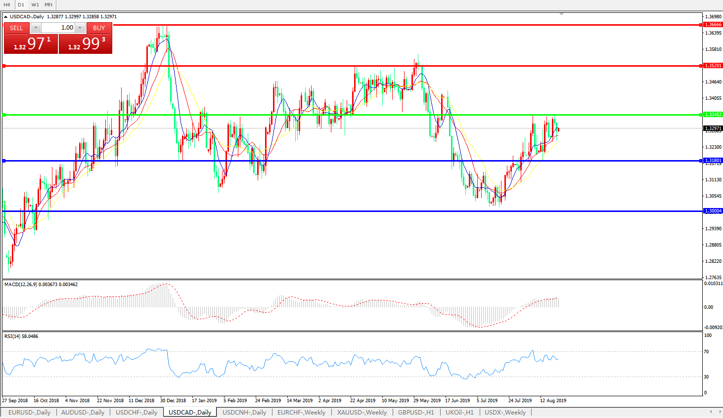 美元兑加元USDCAD    日线图:
