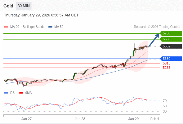交易策略: 在 5380 之上,看涨,目标价位为 5650 ,然后为 5730 。
