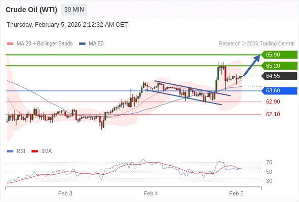 在 63.60 之上,看涨,目标价位为 65.20 ,然后为 65.90 。