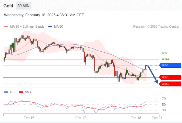在 4920 之下,看跌,目标价位为 4870 ,然后为 4842 。