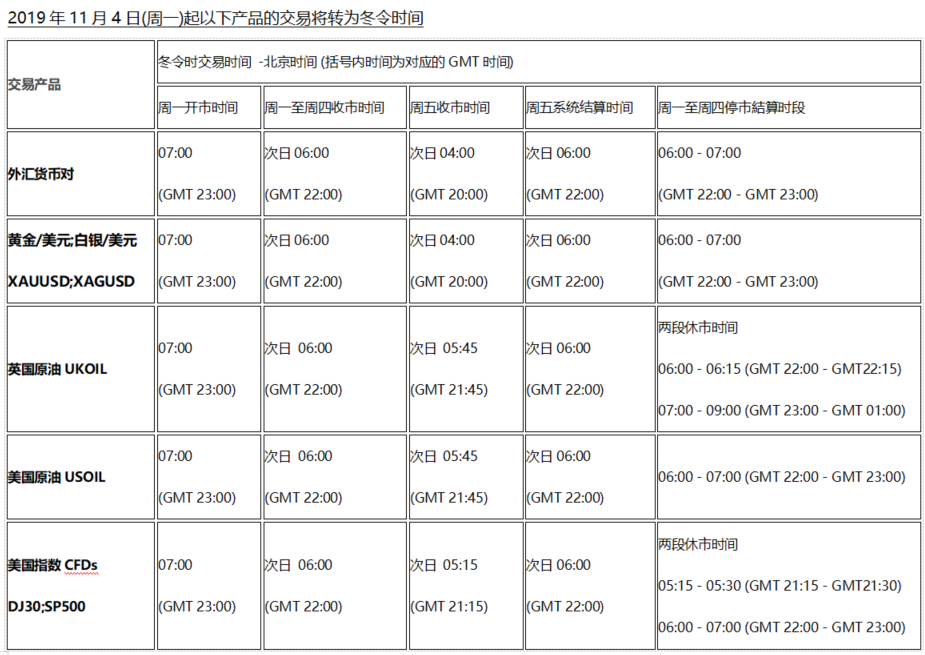 欧美时区冬令时交易时间通知