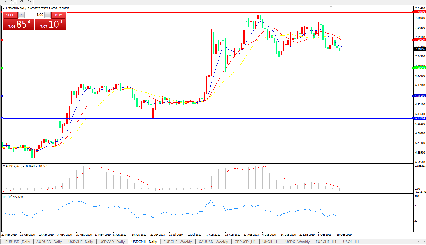交易策略: 在7.0000之上,看涨,目标价位为7.1000,然后为7.2000。