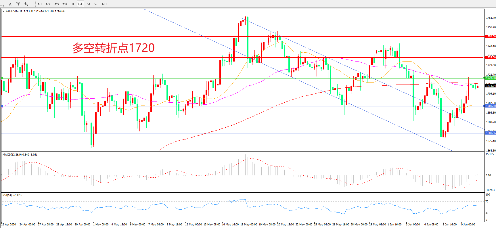 多空转折点:1720.00