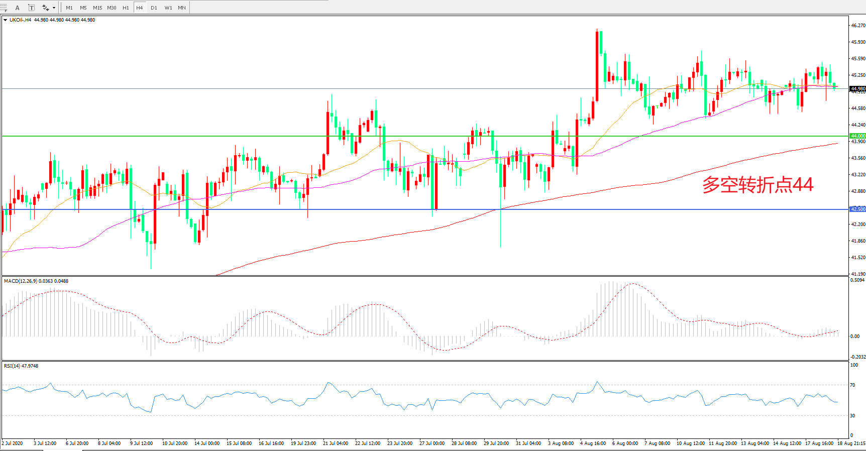 交易策略: 在44.00之上看涨,目标46.50      49.00