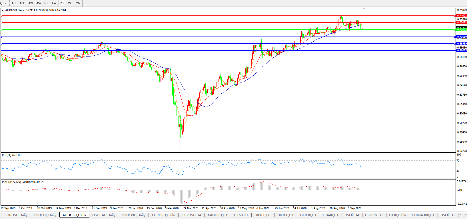 备选策略:0.7200上方看涨,目标0.7300、0.7400