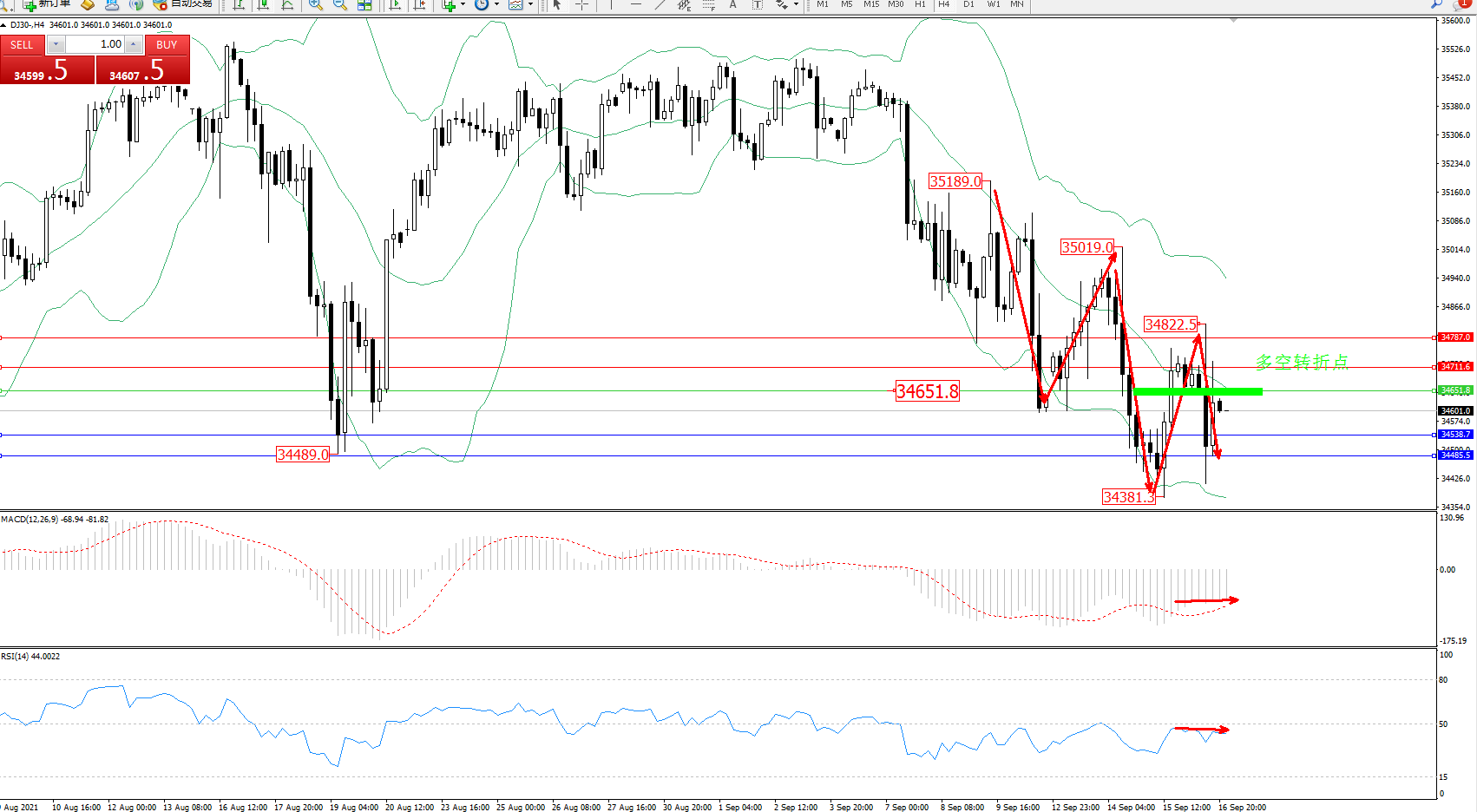 交易策略:34651下方看跌,目标34538、34485