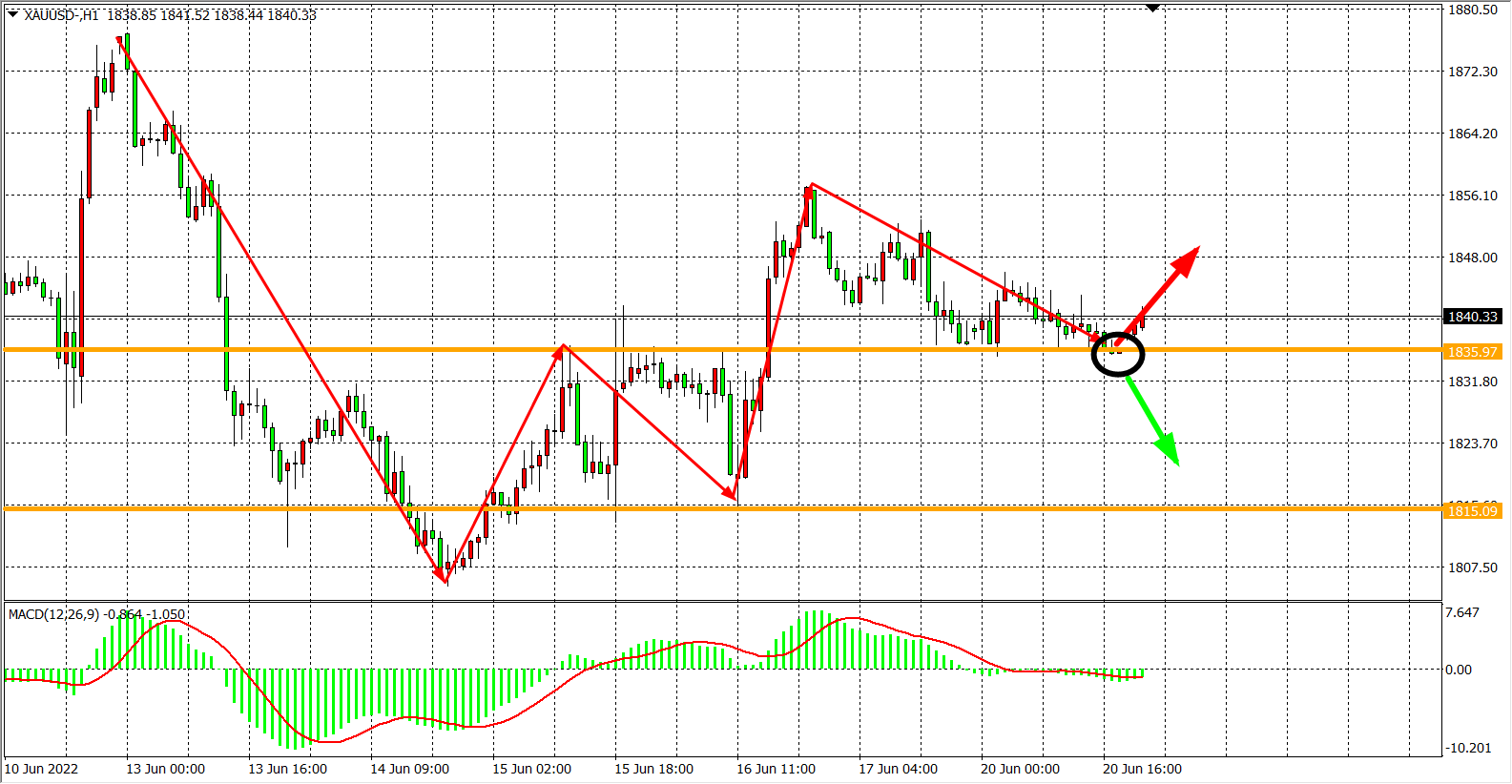 交易策略:在1835.00之下看跌,目标1825.00          1815.00