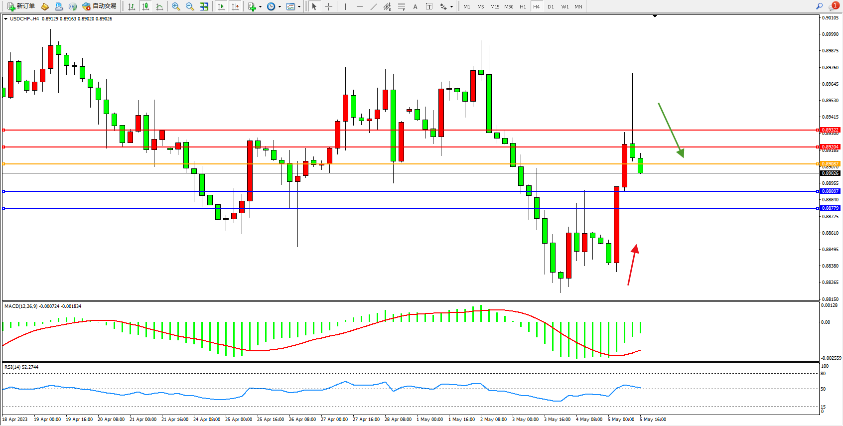 美元瑞郎USDCHF——4小时K线图显示: